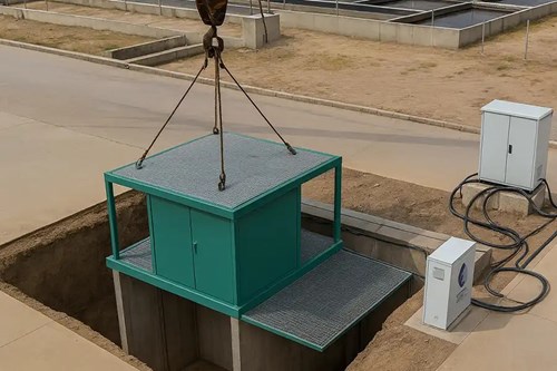 پکیج پمپاژ فاضلاب پیشساخته در حال نصب